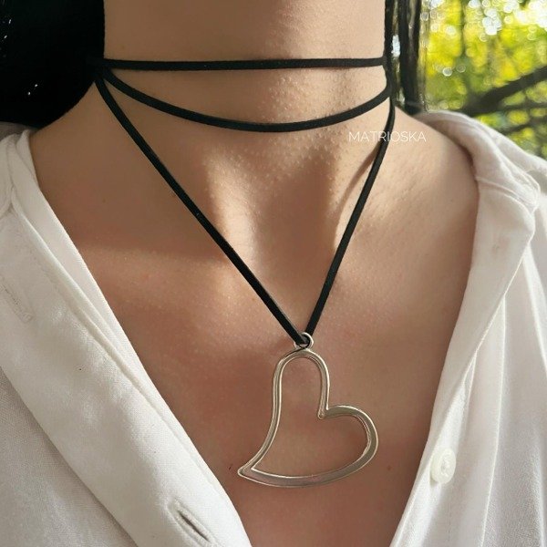 Choker de gamuza con dije de niquel (sin terminación de bolitas de niquel)