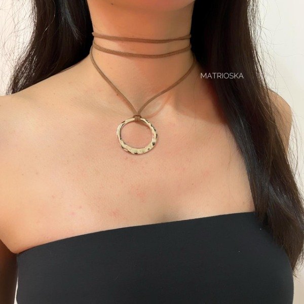 Choker de gamuza marrón con dije de niquel
