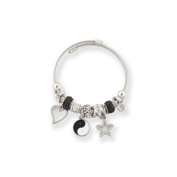 La pulsera es de acero quirúrgico y los charms de ccb niquel